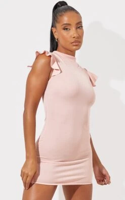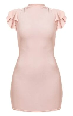 This dress is sure to be at the top of your new season hit list doll. Featuring a rose hue material with a high neck style with frill sleeve detailing. Style with clear heels and simple accessories to elevate the look further.