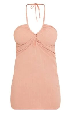 Get maxing out your wardrobe with this rust linen look ruched cut out halterneck bodycon dress. This dress is made from a rust linen look material for an effortlessly chic look we are loving. With a ruched design and a cut out detail, this bodycon dress has a flattering fit we are obsessing over. Team with some of your fave gold hoops and a pair of chunky sandals to complete the look that will earn you some real styling points.