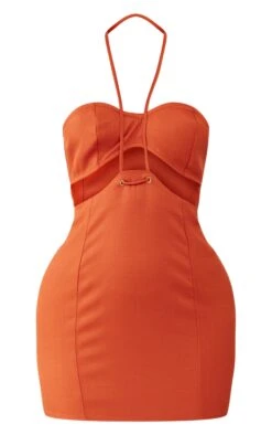 Rust Woven Linen Cut Out Strap Detail Bodycon Dress