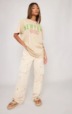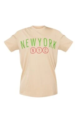 Give your off-duty wardrobe a serious update with this stone New York NYC print t-shirt. Brought to you in a stone hue material with a ‘New York NYC’ printed design, what more could you need? In a relaxed oversized fit, this printed t-shirt is perfect for those chilled days and beyond. Keep it casual and team with some cargo trousers, sandals and your go-to accessories for a neutral off-duty look we just can’t get enough of.