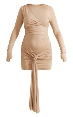 This dress is perfect for your weekend styling doll. Featuring a stone slinky material with drape detailing, long sleeves and a figure-flattering fit, we’re in love. Style with your high heels, gold accessories and mini bag to elevate the vibe.