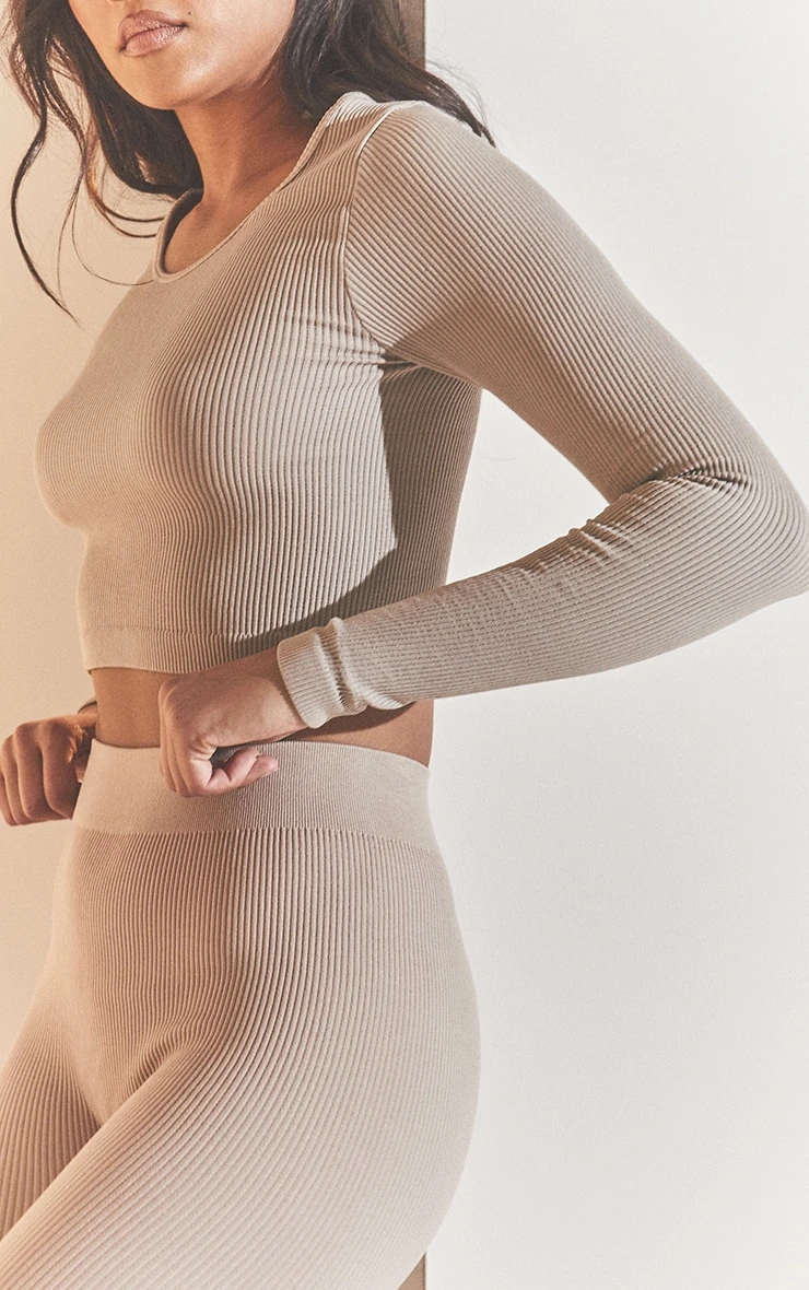 This top is a must-have for your new season collection. Featuring a stone contour ribbed material with a round neck design, long sleeves and a cropped length, what’s not to love? Team this with the matching leggings and chunky kicks for a chilled combo.