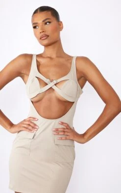 When the weekend calls for a little drama this stone woven buckle trim cargo style bodycon dress is sure to be at the top of your hit list. It is made using a stone hue woven material with a buckle trim detail and a cargo style, get ready to nail major trends doll. Team this figure-worshipping bodycon dress with slip-on heels and your fave accessories for a look that everyone will want.