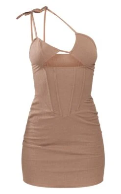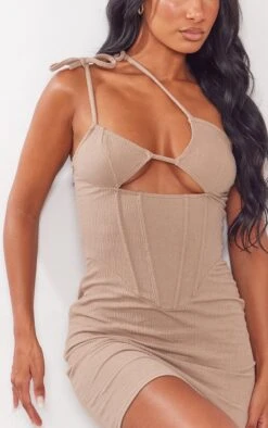 Your new season wardrobe is calling out for this taupe textured jersey strappy corset bodycon dress. Its taupe textured jersey material gives you that luxe touch and its strappy design with corset detail adds all the glam vibes, what’s not to love? This bodycon dress will be your go-to for the summer and it is sure to gain all the compliments. Style effortlessly with clear strap heels, gold accessories and a mini bag for a flawless finish.