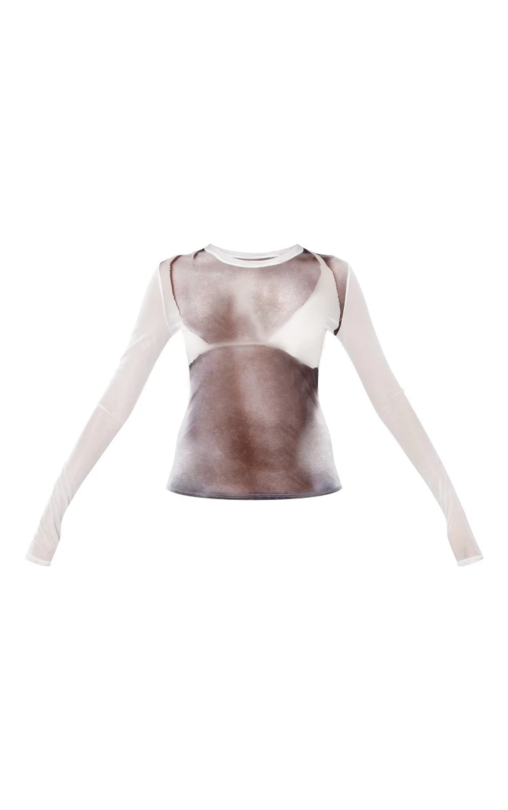 Add a little edge to your outfit of the day with this white body printed mesh long sleeve long top. Looking for the perfect piece to solve your everyday styling dilemmas? Then you’re sure to add this long top straight to your basket. It includes a white body printed mesh material with long sleeves and a figure-flattering fit, what’s not to love? Team with blue jeans and flatform sandals for a fool proof finish.