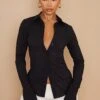 This shirt is sure to be a staple piece in your new season wardrobe. Featuring a white chiffon material with a fitted style, what’s not to love? Wear with split hem bottoms and an oversized blazer for a seriously chic look.