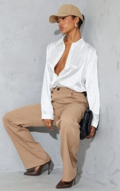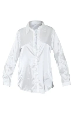 A satin shirt is essential this season and we are obsessing over this one. Featuring a lightweight white satin material with an oversized fit and button up front design, this shirt can be styled up or down whatever the occasion. Get ready to nail major trends with this collar shirt, the ultimate must-have for effortless day to night styling. Team this white shirt with wide leg bottoms, slip on heels and gold accessories for a look that is sure to earn you some serious style points.