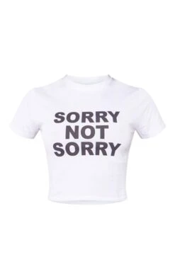 Level up your off-duty wardrobe with this white sorry print fitted t shirt. This women’s t shirt is brought to you in a white material with a ‘Sorry Not Sorry’ print, how could you say no? Whether it’s a chilled day at home or you’re running your everyday errands this women’s white tee is the one for you. Level up the look and add a denim skirt, sandals, box-fresh kicks and your everyday essentials for the ultimate combo.