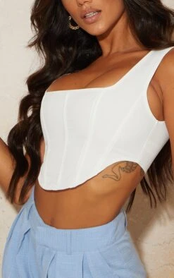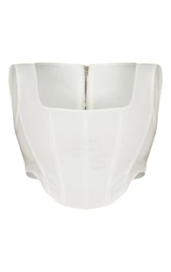 We are obsessing over this crop top for your new season look. Featuring a white bengaline material with boned detail and corset style, what’s not to love? Style with wide leg bottoms and strappy heels for a seriously chic look.