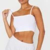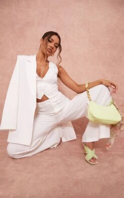 This season the corset is on-trend. Featuring a white woven material with a belted design, button front detail and a plunging neckline, we’re obsessed. Team this with matching hue bottoms and heeled mules for a dinner date with the dolls.